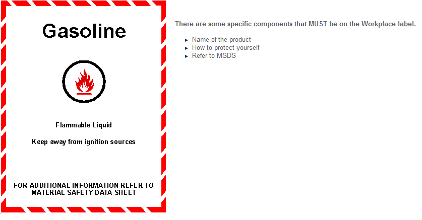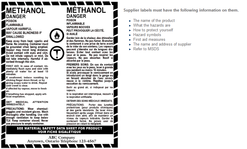 In most cases, this label will be a supplier label - the label placed on the container of hazardous material by the supplier before shipping. Or, the supplier label may be included in the shipment and placed on the container by the receiver when the shipment arrives at the workplace where hazardous material will be used. In other cases, the label may be a workplace label.